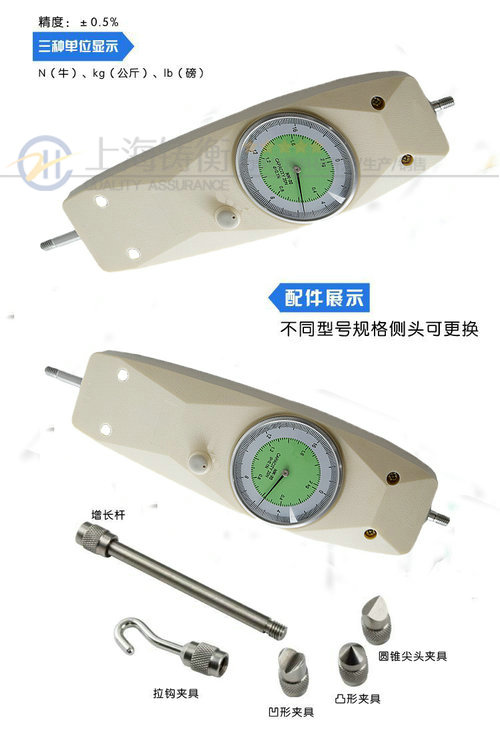 該指針式推拉力計現廣泛應用于電子、高低壓電器、五金制鎖、汽車配件、粘膠化工、打火機及點火裝置、制筆、輕工、建筑、紡織、機械等行業和科研機構作拉壓負荷、插拔力、破壞性試驗測試等,是老式測力計的替代產品。